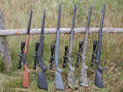Left to right: Kahnke, T/C Encore, Winchester X 150, CVA 26", CVA 24", Knight Super Disc